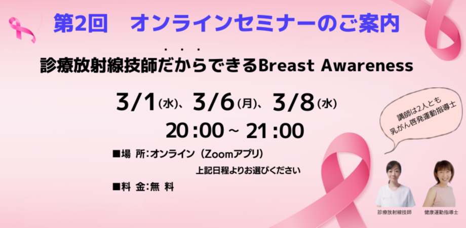 本乳がん啓発運動指導士セミナーリアルで受講の方は同日開催の温活イベント(https://resast.jp/events/1001249)