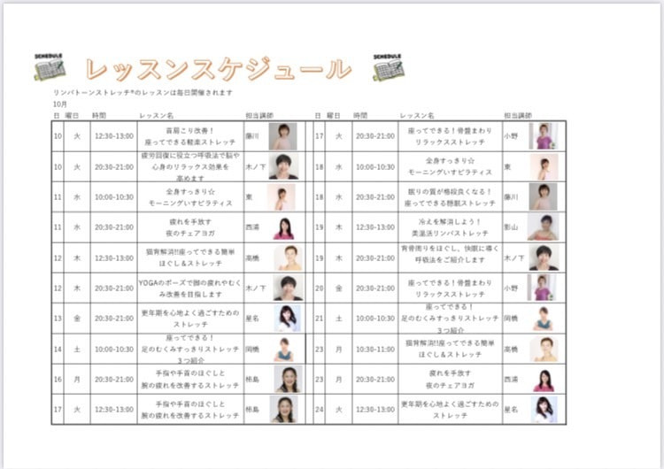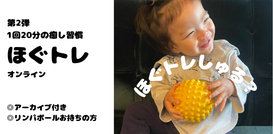| 参加費 | 1ヶ月のみ 2,000円 3ヶ月継続 5,200円 1ヶ月のみ(リンパボール付き)4,400円 3ヶ月継続(リンパボール付き)7,400円 |