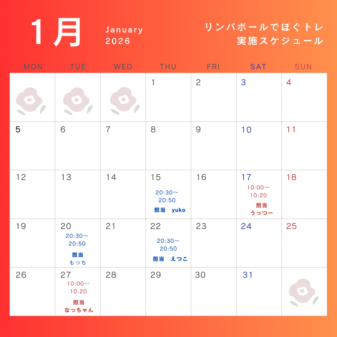 | 申込期限 | 1月14日(水)まで 早期申し込み特典!12月25日までにお申込みの方にチョコ(ブラックサンダー)引き換えチケットプレゼント リンパボール付き 1月8日 23:59 |